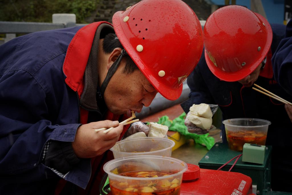 “大家這幾天辛苦了,天氣這么冷,都停下來吃個(gè)熱口飯暖和暖和”。
