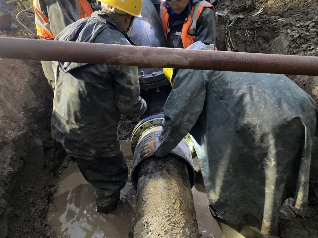 “大家一定要注意防護(hù),在保證安全的前提下穩(wěn)穩(wěn)當(dāng)當(dāng)?shù)匕鸦罡珊茫 睋岆U(xiǎn)工人迎著風(fēng)寒、腳踩泥水,一下一下對鑄鐵管道進(jìn)行切割和打磨,揮汗如雨。