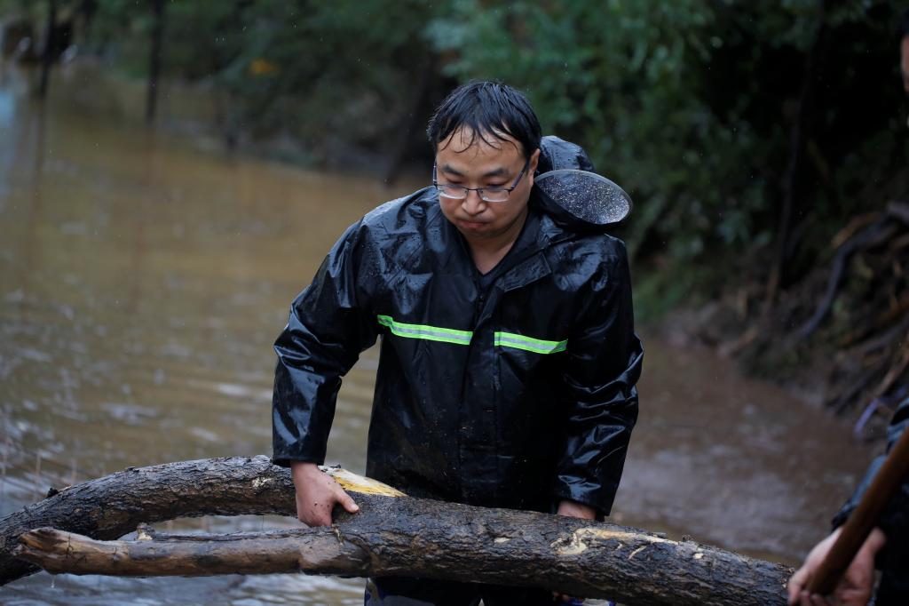 在齊腰的洪水中,黨員干部不忘初心,牢記使命,主動(dòng)請(qǐng)纓。