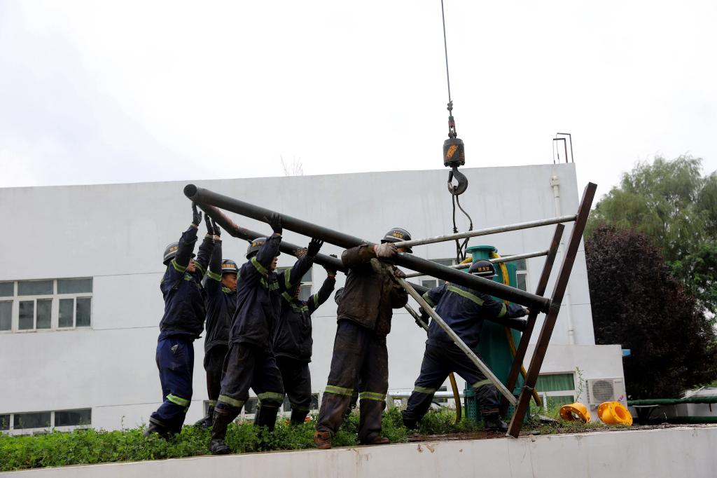 軍人出身的副隊長孫建雷軍帶頭抬電纜、安水泵、接水管,連續(xù)20個小時以上,顧不上家里年幼的孩子。