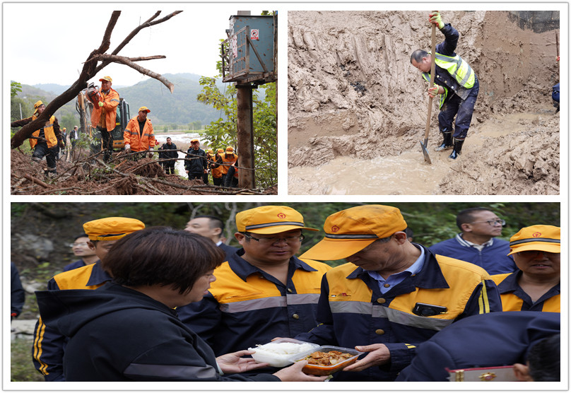 “大家先別干了,快過來吃飯啦!今天為大家準(zhǔn)備了土豆雞塊、炒米飯、雞腿,大家再想吃什么就給我說……”在廣大干部職工沖鋒一線,全力以赴抗災(zāi)搶險的同時,該公司行政部門成立了后勤保障小分隊,深入一線,將可口的飯菜送往各作業(yè)地點,確保搶險人員能夠及時補充體力,專心投入到搶險救災(zāi)工作中?!熬葹?zāi)隊員在一線出力,后勤人員就讓他們把力補回來,我們也算為搶險救災(zāi)出一份力,讓這些在一線工作的人吃上可口的熱乎飯?!痹摴臼程弥鞴芡醅|說道。