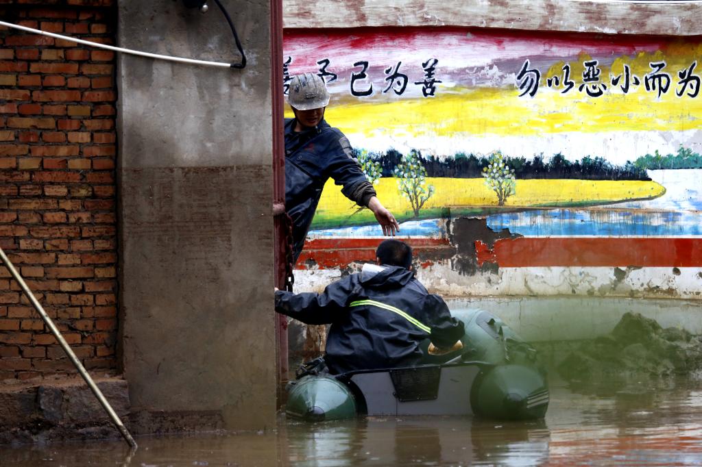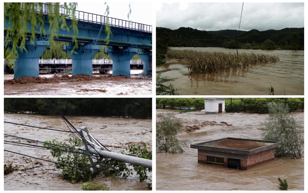 雨似乎小了些,習(xí)慣性地帶著相機(jī)直奔河堤,和我的想象中的一樣,渾濁而洶涌的河水竟與近7米多高的河堤平齊,我彎腰便可用手觸及河面。又和我想象中的不一樣,奔騰的黃泥水不斷地沖擊著眼球與耳朵,我感到了震懾,這該死的壓迫感。沿河一路前行,橫跨河面的的幾座小橋消失的無蹤無影,我想是被帶到了下游,沿河公路坍塌、房屋坍塌、還沒來得及收的玉米地一片汪洋,大棚種植的果蔬也只能看到一絲白色的頂棚,電線桿子橫七豎八地倒在水中……這就是災(zāi)難,它來了!