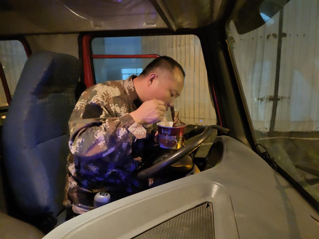 在送水期間,薛建軍同志始終堅守在送水一線,餓了吃點方便面、饃片,渴了喝點礦泉水,疲累了就在加水的間隙,在車上打個盹,一干就是十幾天。當(dāng)其他指戰(zhàn)員關(guān)心的想要替換他時,他說:“我不累,我還能堅持,沒有什么困難能打倒我們共產(chǎn)黨人?!彼贿呎f著一邊開車在送水的路上漸行漸遠……