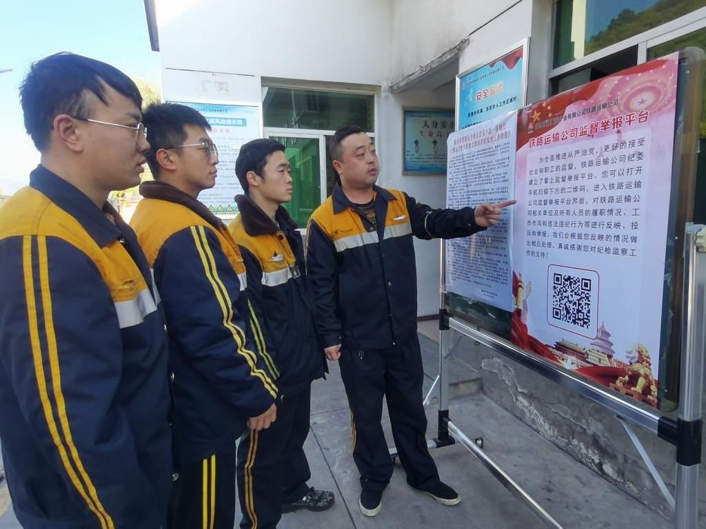 “門(mén)口這是貼的啥呀?”“這是鐵路運(yùn)輸公司監(jiān)督舉報(bào)平臺(tái),除了舉報(bào)違規(guī)違紀(jì),還能對(duì)工作作風(fēng)、履職情況進(jìn)行監(jiān)督、投訴?!辫F路運(yùn)輸公司車輛段幾名職工看到張貼的海報(bào)時(shí),討論了起來(lái)。