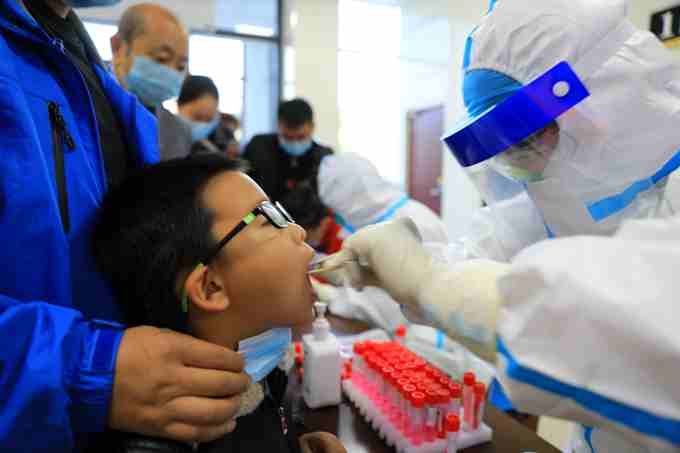 “來,張開嘴,不要緊張!”核酸檢測工作人員正在為一名兒童進(jìn)行核酸檢測,在他的正確引導(dǎo)下,不到一分鐘的時間,便完成了采樣。