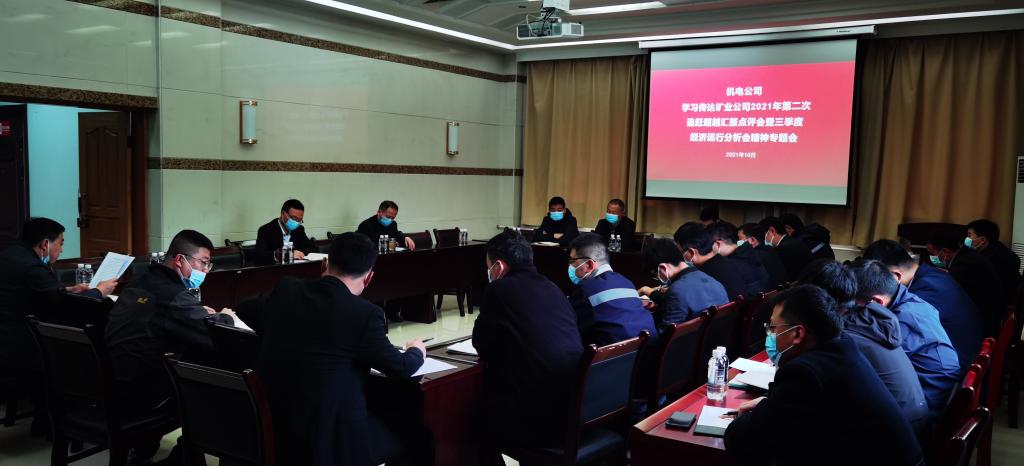 10月27日,機電公司在四樓會議室召開專題會議,傳達落實礦業(yè)公司2021年第二次追趕超越匯報點評會暨三季度經濟運行分析會精神,對前三季度經營工作進行了總結分析,對下一步重點工作進行了安排部署。該公司領導班子及各單位負責人共計20余人參加會議。