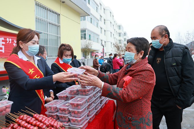 經(jīng)過(guò)兩小時(shí)的精心制作,一串串掛滿糖汁,晶瑩剔透的冰糖葫蘆做好了,該礦第一時(shí)間組織工作人員把山楂及冰糖葫蘆運(yùn)往職工家屬小區(qū)送開展“送健康、享生活”慰問(wèn)活動(dòng),廣大職工及家屬200余人來(lái)到了現(xiàn)場(chǎng)。依次從工作人員手里接過(guò)新鮮采摘的山楂以和加工的冰糖葫蘆,臉上掛滿了笑容。