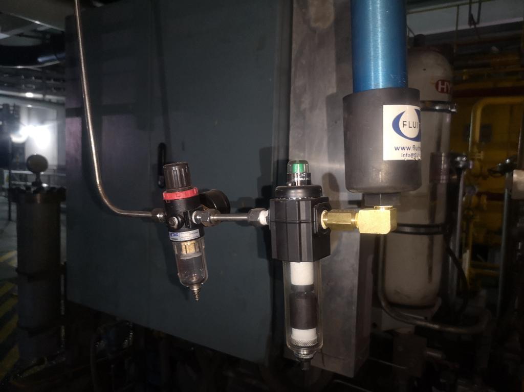 針對這一問題,該公司組織技術(shù)骨干經(jīng)過反復(fù)研究論證,決定對高壓抗燃油系統(tǒng)進(jìn)行除水裝置改造。新除水裝置垂直懸空安裝,兩端焊接外螺紋金屬硬管,其中一端和油箱頂部的進(jìn)氣小孔相連,另一端與儀用壓縮空氣母管相連接。全程管路采用密封焊接處理,最大限度避免外部環(huán)境帶來的“二次污染”。除水裝置內(nèi)帶有差壓指示的前置過濾器內(nèi)含有機(jī)械濾芯,通過24小時不間斷的置換將壓縮空氣中的機(jī)械雜質(zhì)和油、水分過濾并進(jìn)行深度干燥后,利用“擠壓”的方式將箱內(nèi)含有水、油等雜質(zhì)的空氣從油箱空氣呼吸器中排出,使深度干燥的壓縮空氣完全覆蓋油箱頂部氣相層,確保箱內(nèi)始終干燥。