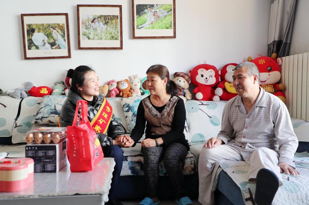 “現(xiàn)在家中急需解決的難題是什么?”“生活上還有什么困難?”“老人現(xiàn)在都用什么藥,需要解決哪些難題……”在倪秋全的家中,工會工作人員的滿腔熱忱地為其雪中送炭、排憂解難,幫助其克服困難、渡過難關(guān)。面對面的溝通,心貼心地交流,讓原本有些拘謹(jǐn)?shù)哪咔锶幌伦哟蜷_了心扉侃侃而談,不時傳出歡快爽朗的笑聲。