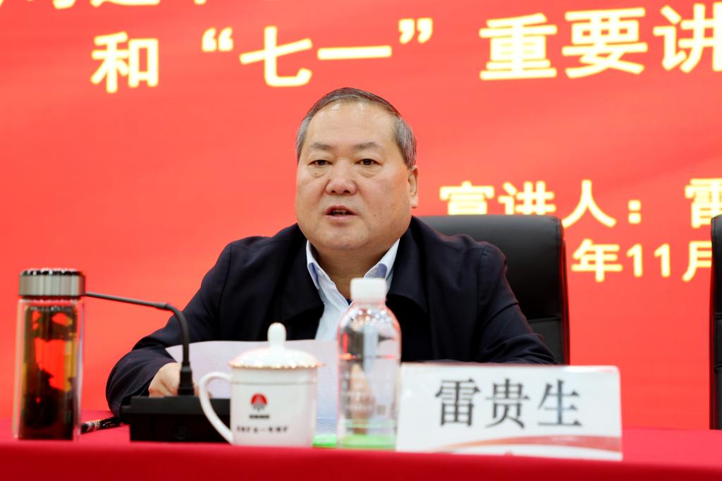 11月25日上午,公司黨委書記、董事長(zhǎng)雷貴生到一號(hào)煤礦宣講習(xí)近平總書記來陜考察重要講話重要指示和“七一”重要講話精神。