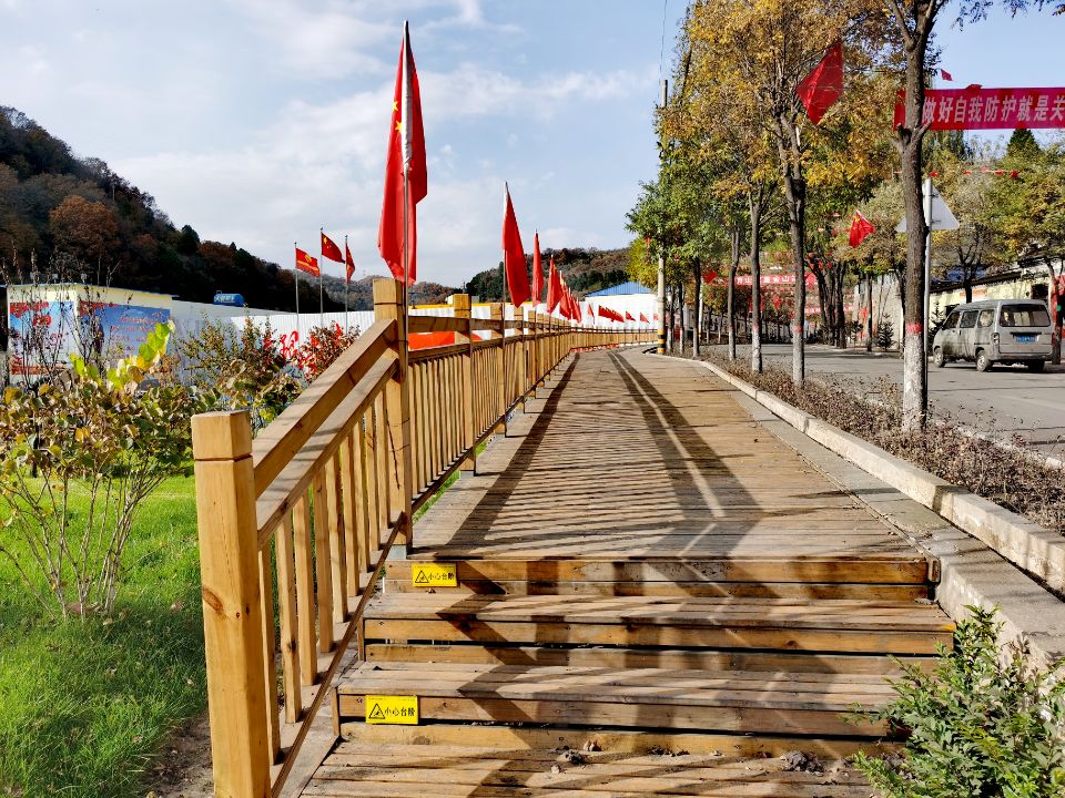 作為礦區(qū)行人安全出行的通道,這個棧道的造型和其他旅游景點的不同,它沒有其他棧道高聳險峻、通山達海的氣勢,卻樸實無華又不失田園雅致。棧道起點在中心廣場入口處,長約百米,平均兩米多寬,由一條條規(guī)則的木板鋪成,如一條素雅的飄帶,更像是通向幽處的曲徑,從礦區(qū)穿梭而過,一路蜿蜒通向煤場。棧道一邊緊鄰著礦區(qū)主干道,一邊隔著中心廣場和廠區(qū),時而直,時而曲,時而上臺階。木棧道旁有一彎人工打造的小河,河水來自于公司污水處理廠,小河雖小,卻也彎彎如溪流,清清河水中人工鋪好的鵝卵石在河底閃閃發(fā)光;河邊種植著多種冬青,以此分割著礦區(qū);棧道另一邊是木制護欄,上面刻著不同時段的“實”字,實字雖不同寫,民生卻相同義,“實文化”理念在礦區(qū)處處可見。站在棧道上,人們或可依欄看廣場景致,看遠處群山,那靈動的噴泉、干凈整潔的運動場、各種各樣的花卉樹木,一處一處,入眼入心。