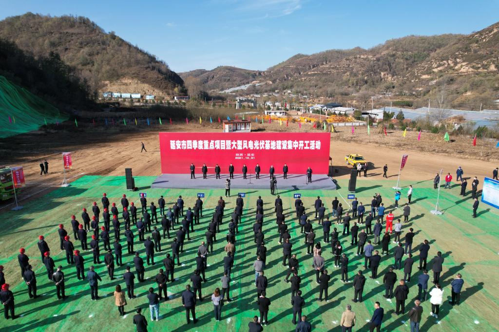 2021年10月31日,延安市四季度重點(diǎn)項(xiàng)目暨大型風(fēng)電光伏基地建設(shè)項(xiàng)目集中開工活動(dòng)在黃陵礦業(yè)公司安塞區(qū)高橋光伏發(fā)電項(xiàng)目點(diǎn)舉行,公司300MW新能源光伏發(fā)電項(xiàng)目開工建設(shè)。