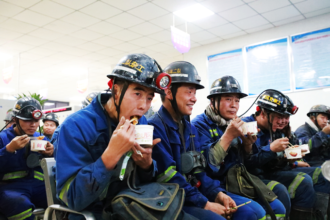 “劉師傅快換完衣服快去排隊,礦嫂們正在井口愛心驛站給煮餃子呢!”