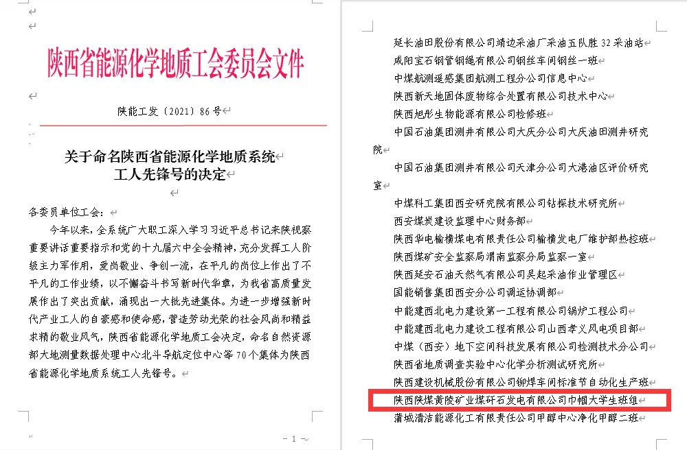 近日,從陜西省能源化學(xué)地質(zhì)工會委員會獲悉,煤矸石發(fā)電公司巾幗大學(xué)生班組榮獲陜西省能源化學(xué)地質(zhì)系統(tǒng)工人先鋒號。