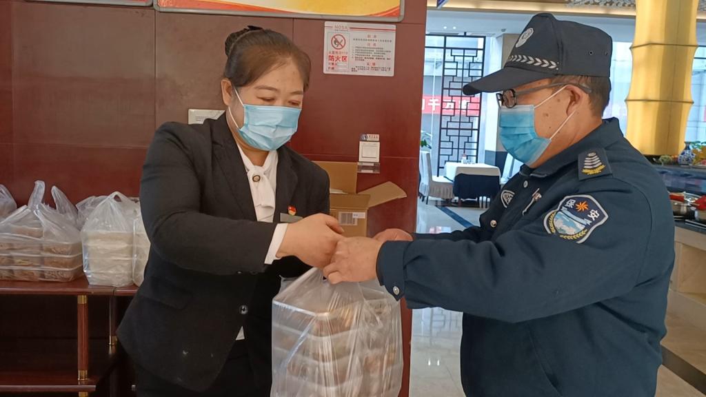 防疫不防愛,隔離不隔心。無論是在核酸檢測點,還是在小區(qū)隔離點、公共區(qū)域消殺處,都能看到礦業(yè)賓館黨員干部忙碌的身影??头坎抠苘娖紟ьI職工晝夜堅守,每隔兩個小時對賓館大廳、電梯、餐廳、辦公區(qū)域等場所進行環(huán)境消殺。為了讓隔離人員和工作人員吃得滿意,該賓館質(zhì)量總監(jiān)朱艷艷承擔起安全管理、環(huán)境消殺、菜品搭配、餐食配送、垃圾清運等工作,餐飲部職工每天凌晨5點到崗,及時完成早餐和午餐的制作、包裝和配送。