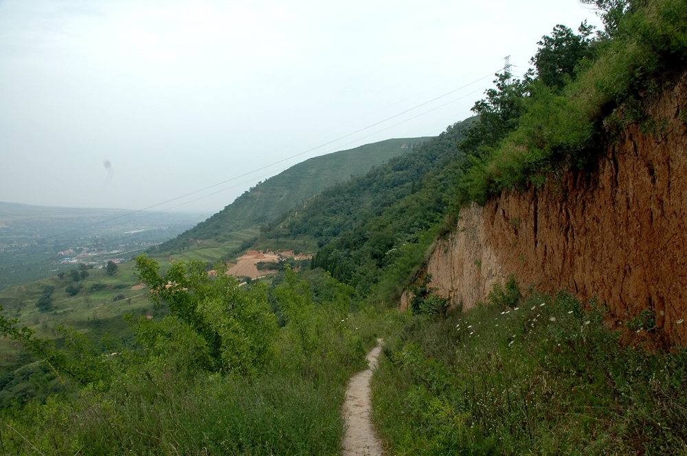 半山腰甚是難行,腳下無路,突然出現(xiàn)的藤蔓隨時都能夠?qū)⑷私O倒,尤其那些帶刺的灌木,張牙舞爪橫在眼前,若手里有個鐮刀或者小?的話,這些都不足為慮,但兩手空空,最苦不堪言的是,那天還穿了短袖短褲,以至于穿過一片灌木山坡后,腿上胳膊上已經(jīng)有了很多道血印子,可在半山腰,上也不是下也不是,只能硬著頭破頂著烈日繼續(xù)前行。不一會,一條白色的土路在野草中顯露了出來,饑渴難耐下只能咬牙加快腳步,也不知用了多久,最終到了這條路上,放眼望去,小路可以直接通往山下的大路上,心中便暗自竊喜,步伐也快了起來,當踏上這條路的時候如釋重負,快速向山下而去,那道突出的土梁就在右手邊,與這道土路僅僅隔了一道土溝而已,直到后來,我才知道,那道土梁便是鳳凰嘴,而我腳下的這條土路,是原先村民們上坡耕種的一條生產(chǎn)路,山下的這個村子便是毛窯院,而我的第一次訪古也最終因失敗而告終。
