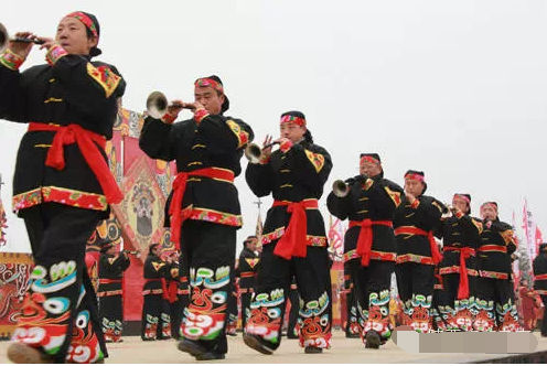 每當(dāng)鑼鼓家什咚咚、嚓嚓敲地響,傘兒撐開,扇子起舞時,你聽那一曲曲古的、新的、流行的吹個不停,而穿紅戴綠的秧歌隊在嗩吶的助威下才能盡興發(fā)揮。到了元宵之夜,在街道和九曲灘前,也都有嗩吶班的吹奏。廟會期間有時會有兩三班吹手的吹奏,那就更熱鬧了,你一輪,我一陣,輪流吹奏,比高論低,把一個個前來敬香的人聽的目瞪口呆,陣陣喝彩,讓人沉浸在春節(jié)喜慶祥和的氣氛中。