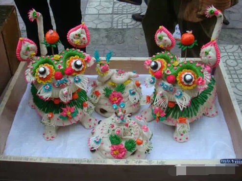 從農(nóng)歷“小年”開始,蒸饃成為陜西各家各戶的頭等大事。各家的大姑娘、小媳婦三五相約,相互幫忙,今天你家,明天我家,起面、發(fā)面、揉面、捏花色……一袋袋面粉在他們靈巧的手中不斷變幻,升華為富有多項祝福意味的“春節(jié)符號”。
