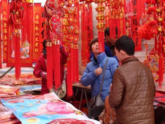 年貨攤上,除了燈籠、塑料花、各式掛件外,還售賣對聯(lián)和紅包紙。這些店鋪似乎永遠(yuǎn)都只在這幾天出現(xiàn),年頭過了也就跟著走了。一副副春聯(lián)被一一看過,一張張年畫被一一翻覽。“好日子”的歡喜之情,就跳躍在年貨攤前由人們低頭又抬頭、翻過又翻回所編織起的精挑細(xì)選之間。