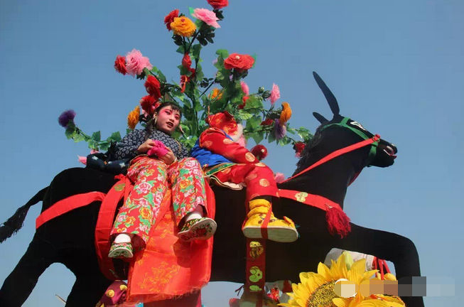 長安侯官寨“牛老爺”社火在方圓百里堪稱一絕。侯官寨位于終南山腳下的西安市長安區(qū)楊莊鄉(xiāng),東鄰藍(lán)田,北接歷史名鎮(zhèn)引鎮(zhèn)。侯官寨村社火起于明代,興盛于清代,延續(xù)至今。社火中的這位核心人物——牛老爺其實是村民們推選出來的“春官”,在古代農(nóng)耕社會里,春官是皇帝派來報春的官員,而耕牛又是農(nóng)耕社會里最能代表勞動力的牲畜。因此,歷史中春官的形象都是騎牛到田間報春,牛老爺其實是侯官寨村民給春官起的小名。每年正月十五前后,侯官寨的莊稼人都要耍社火,祈求一年風(fēng)調(diào)雨順,五谷豐登,國泰民安。