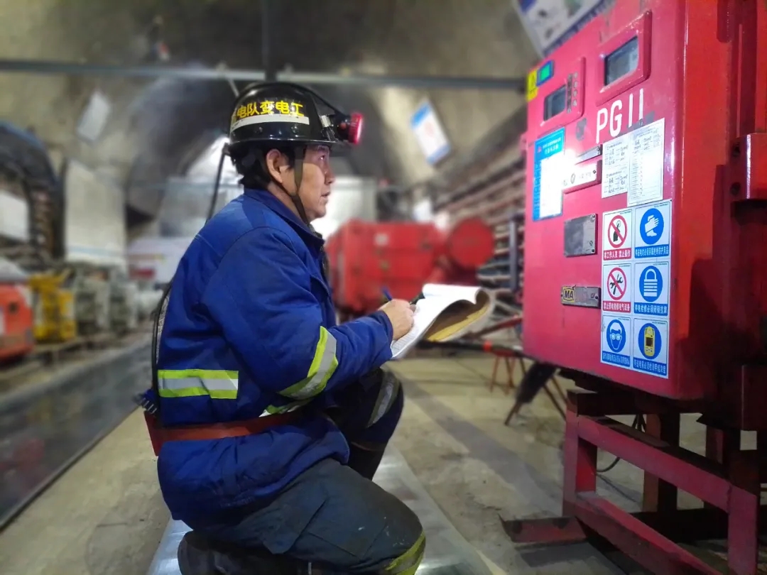 “變電所所有設備完好,運轉正常,記錄完整清晰?!蓖瑯邮窃诖竽瓿Φ囊估铮摰V井下變電所變電工劉根生正通過電話向地面匯報工作。作為一名老黨員,他必須要嚴格以一名共產黨員的標準來要求自己,作為一名老變電工,他同樣也知道,自己肩負著井下所有供電的正常和安全。入井前,他抽空通過微信視頻與家人進行了短暫的溝通后,便按時來到百米井下的工作崗位值守,確保井下供電正常。