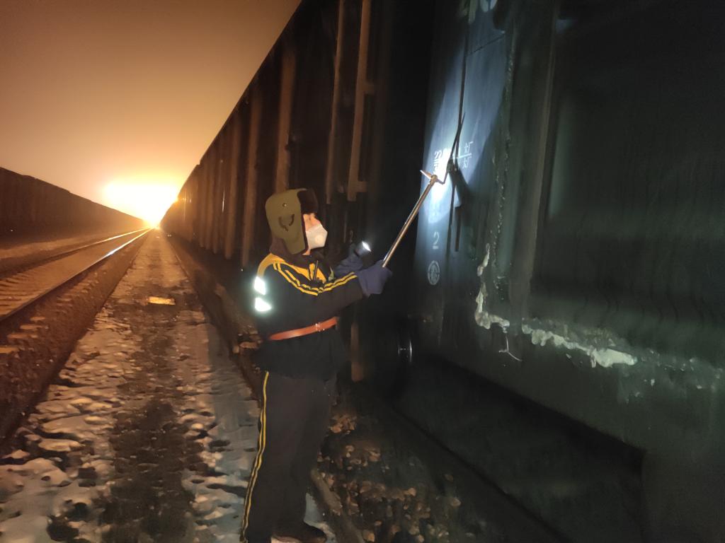 鐵路運輸公司七里鎮(zhèn)站是以運輸煤炭為主的貨運站。為確保疫情期間,冬季電煤的運輸。七里鎮(zhèn)站的列車并沒有減少反而更加忙碌起來,列檢作業(yè)的任務(wù)也更加繁重。所以每次裝車前檢車員都會認真仔細檢查每一輛車輛的技術(shù)狀態(tài),往返一趟差不多要走兩公里,每天檢查九、十次。
