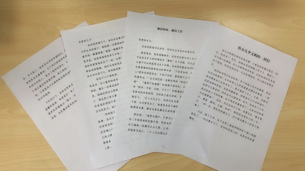 家書家訓(xùn),是良好家風(fēng)的有形載體,承擔著家風(fēng)的傳承、家訓(xùn)的承載。礦業(yè)賓館黨支部向干部職工征集優(yōu)秀家書12篇,倡導(dǎo)職工群眾尊老愛幼、夫妻和睦、清廉敬業(yè)。