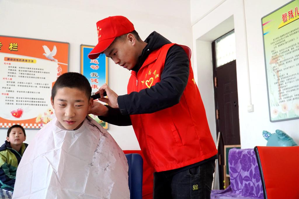 志愿者們?cè)谂惆楹⒆映赃^(guò)午飯后,有與孩子們一起游戲互動(dòng)的,有給孩子們理發(fā)的,有幫助孩子們整理被褥的,有和孩子們攀談暢聊的……離別前,志愿者們將帶來(lái)的鮮花和禮物一一送給師生們,希望孩子們樂(lè)觀向上,多學(xué)本領(lǐng),以良好的姿態(tài)迎接未來(lái)的學(xué)習(xí)和生活,也衷心感謝特教老師對(duì)孩子們的殷切照顧。孩子們也拉著志愿者的手久久不愿松開(kāi),他們用揮手的方式表達(dá)了自己內(nèi)心的不舍。