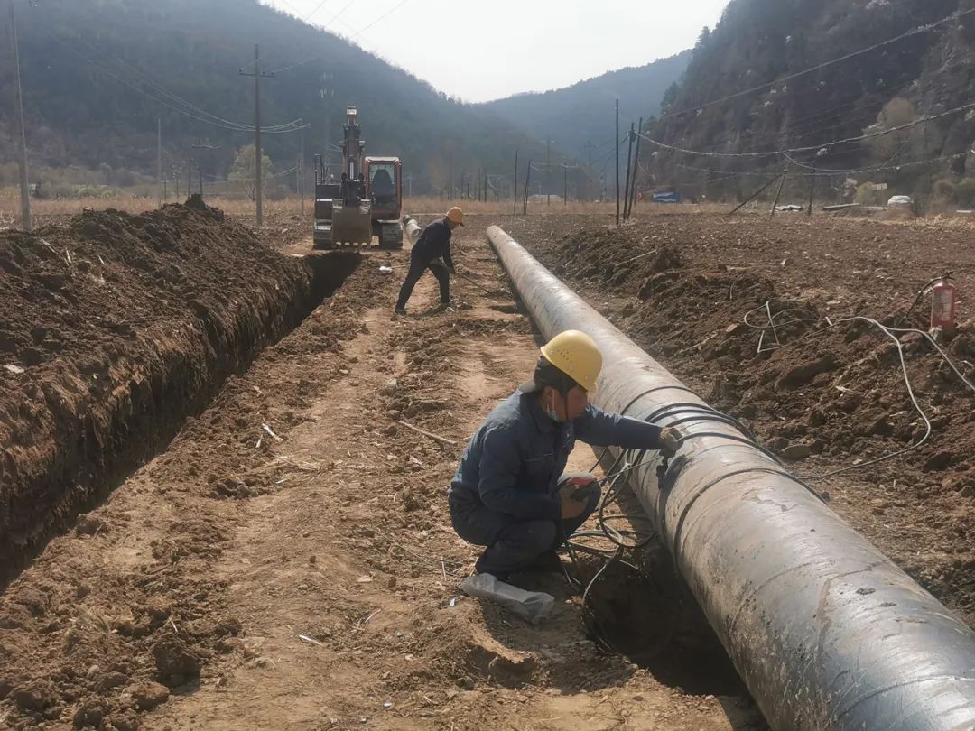 在供水管道小石崖段災后重建現場,兩臺挖掘機配合作業(yè)開挖管道地埋溝道,5名職工緊張地準備著現場施工材料,待鋪設完成后將進行焊接作業(yè),其余9個施工點也在穩(wěn)步快速推進各項施工作業(yè)。