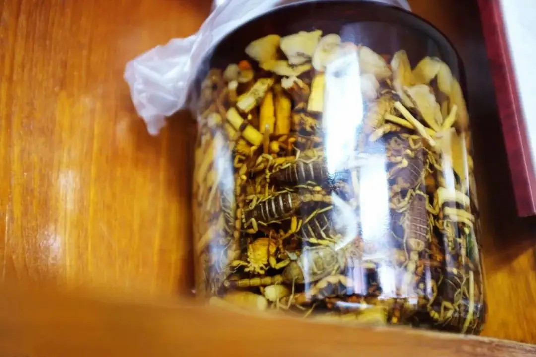 這個(gè)地方流行泡蝎子酒。這在當(dāng)?shù)厥且环N民間工藝,用當(dāng)?shù)氐耐列莅拙?,而且要用活蝎子。泡出來的酒,能夠治風(fēng)濕,能敗火,能排人體內(nèi)的多種毒素。