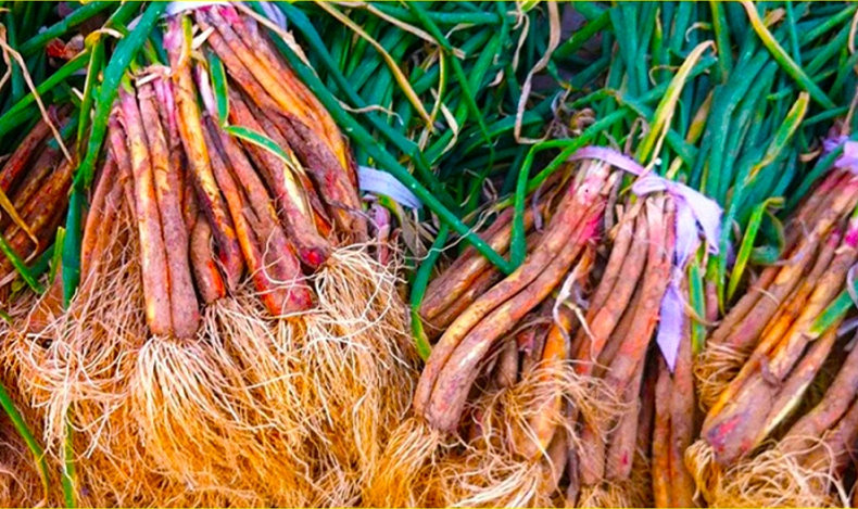 這個(gè)地方出產(chǎn)血蔥。它比普通的蔥長的個(gè)頭小,特征是顏色發(fā)紅,味道特別嗆。這里的血蔥不僅能當(dāng)調(diào)味品,燉出來的羊肉又嫩又香,而且還能當(dāng)補(bǔ)品,尤其壯陽的效果明顯。