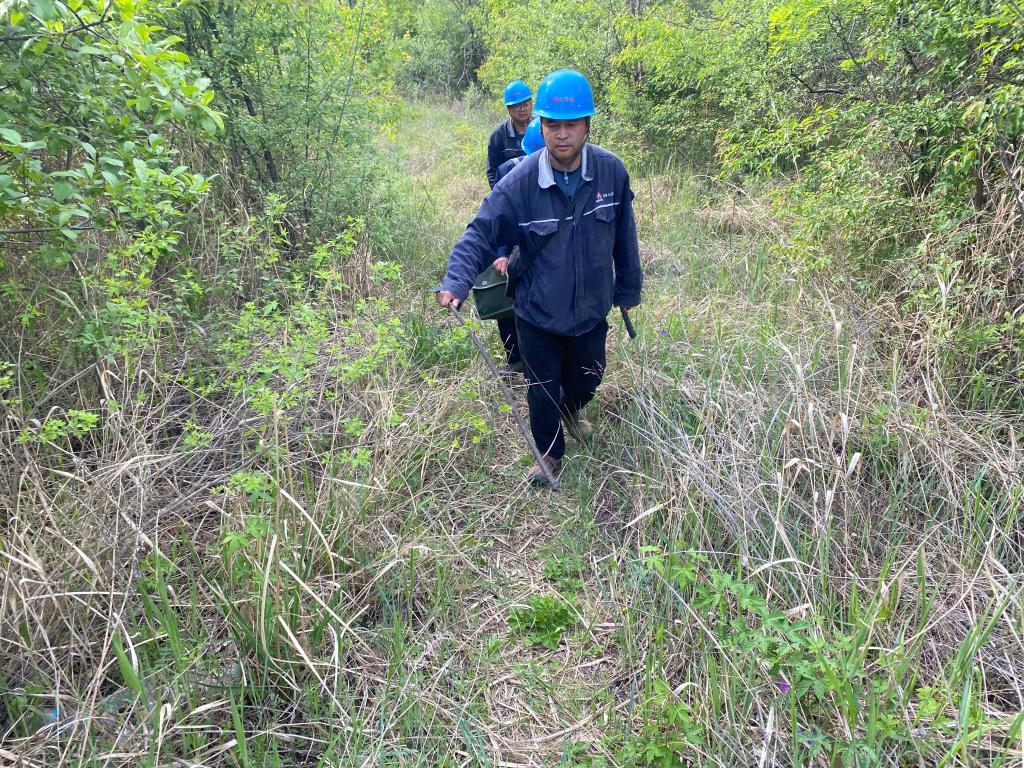 “加快腳步,今天必須要把這段線路巡查完?!睏钊A揮起袖子抹了一把汗,拉了一下肩上的挎包,深藍色的工服后背已經(jīng)被汗水浸透。此時正值晌午,近30度的高溫絲毫沒有影響他們前進的步伐。
