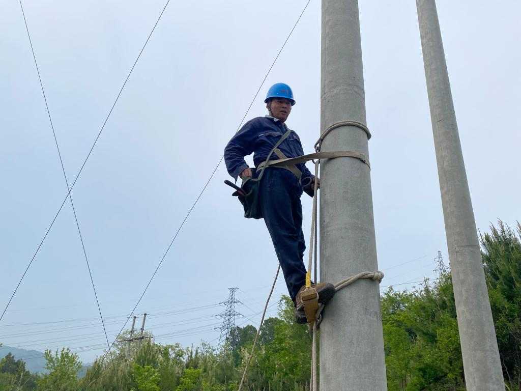 “得控制體重,不敢吃胖,要不然桿都爬上不去。”巡視完成后,楊華坐在地上,摘下安全帽,用手捋了捋早已被汗水濕透的頭發(fā),灌了幾大口水后,整理了工具又匆匆趕往下一處。