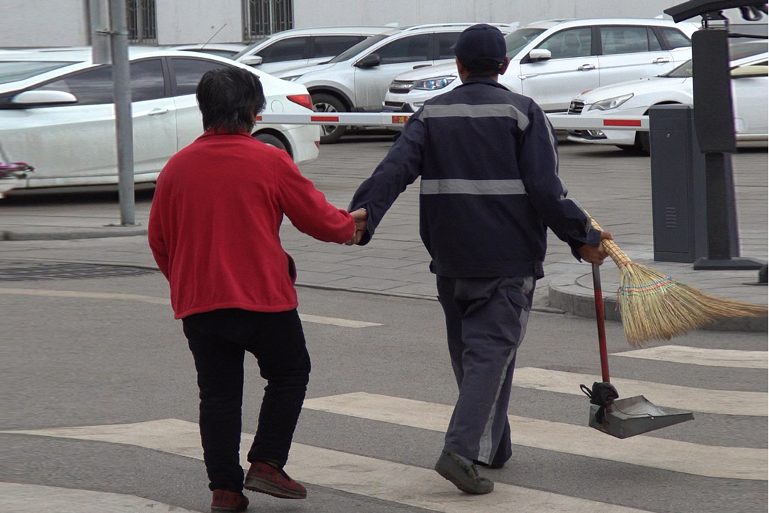 高照茹是一號(hào)煤礦的一名環(huán)衛(wèi)工。每天打掃衛(wèi)生時(shí),他手里總牽著一位反應(yīng)遲鈍、神情呆滯的老奶奶,那是他的妻子,小名叫繡花。