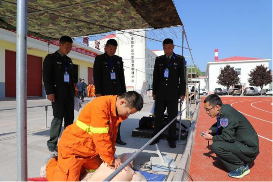 隨著裁判員發(fā)出指令,參賽隊員要著戰(zhàn)斗服,連續(xù)完成4h正壓氧氣呼吸器席位操作、氣體(甲烷、二化碳及一氧化碳)模擬實測、巷道風量計算和心肺復(fù)蘇,30分鐘內(nèi)要連續(xù)完成這4個實操項目,時間非常緊張。
