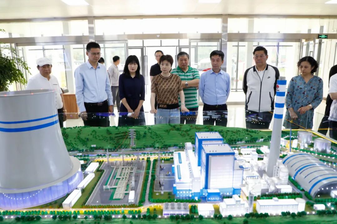 隨后,尚小紅一行來(lái)到黃陵發(fā)電公司,通過(guò)沙盤,對(duì)2×660MW電廠項(xiàng)目的生產(chǎn)工藝流程、主要設(shè)備參數(shù)、項(xiàng)目建設(shè)進(jìn)展、建設(shè)工期等情況進(jìn)行了了解,并就項(xiàng)目投資完成情況、投產(chǎn)后的經(jīng)濟(jì)社會(huì)效益、灰渣綜合利用等方面進(jìn)行了詢問(wèn)交流。