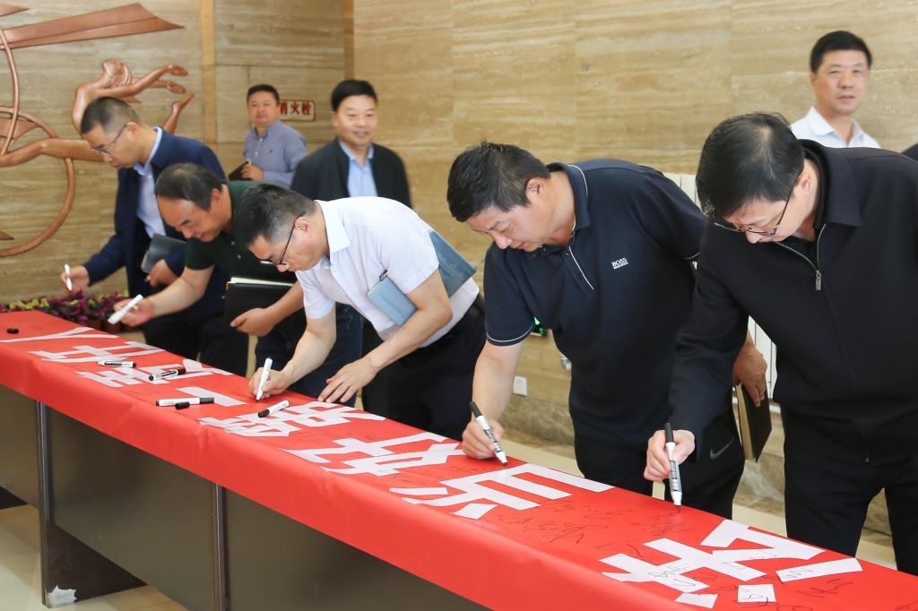 公司領(lǐng)導(dǎo)班子、機關(guān)各部室及各基層單位參會人員在印有“安全生產(chǎn)月”活動主題“遵守安全生產(chǎn)法 當(dāng)好第一責(zé)任人”的橫幅上鄭重簽字,為安全發(fā)展作出莊嚴(yán)承諾。