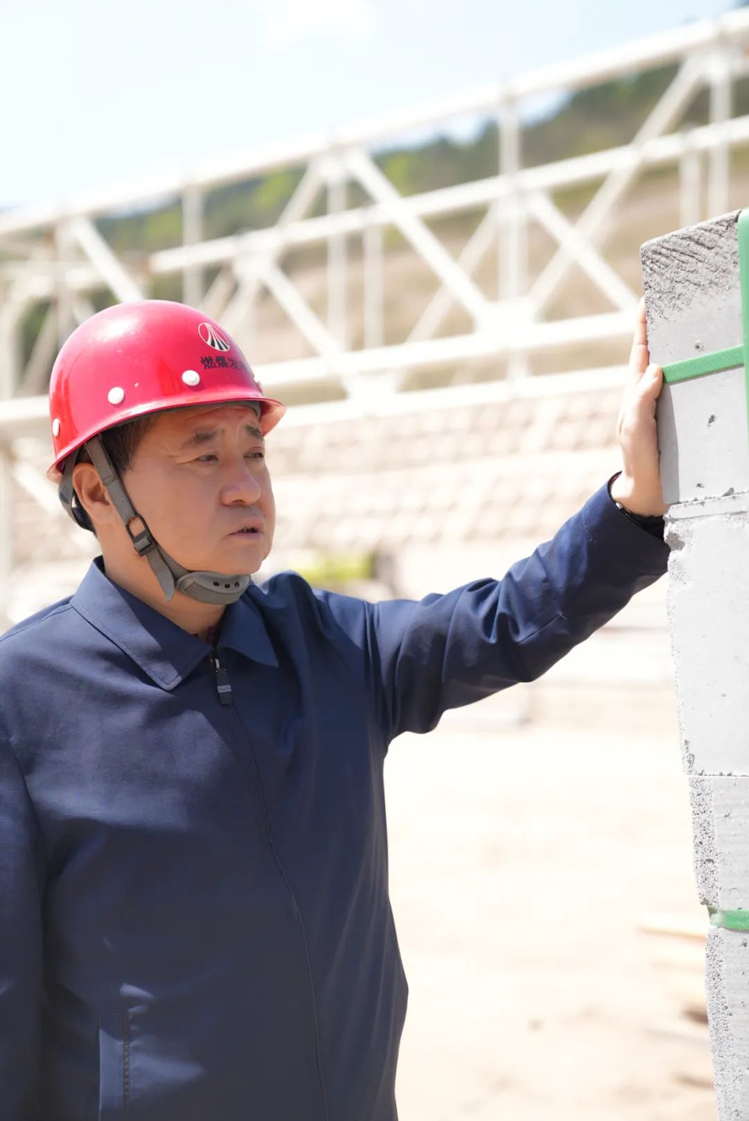 暮春時(shí)節(jié),煤城的陽光火熱地照耀著。天氣回暖是土建開始施工的黃金時(shí)期,在家屬區(qū)住宅樓施工現(xiàn)場(chǎng),“咚咚咚”混凝土輸送泵在澆筑標(biāo)準(zhǔn)層墻體,一名塔機(jī)信號(hào)工正拿著對(duì)講機(jī)指揮塔吊作業(yè)。“有沒有特種作業(yè)證?安全員到?jīng)]到場(chǎng)?一定要注意安全!”一進(jìn)現(xiàn)場(chǎng),廖明祥就詢問現(xiàn)場(chǎng)管理人員,并反復(fù)提醒作業(yè)人員。