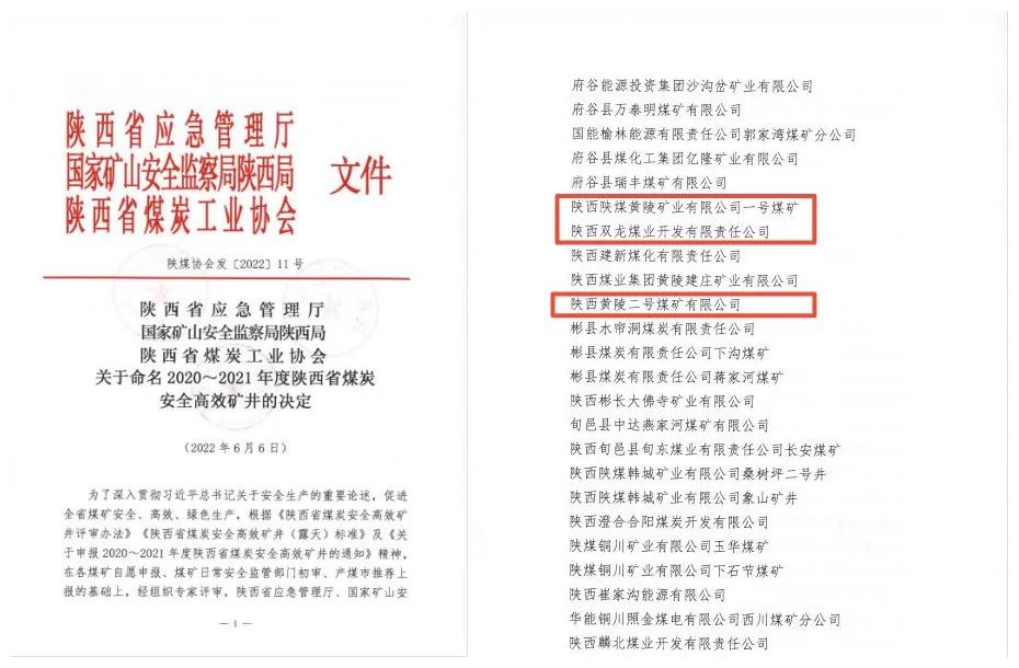 據(jù)悉,陜西省煤炭工業(yè)“安全高效礦井”每兩年評比一屆,共設(shè)立特級安全高效礦井、行業(yè)一級安全高效礦井、行業(yè)二級安全高效礦井三個級別。自評審工作開展以來,公司依據(jù)《陜西省煤炭安全高效礦井評審辦法》及《陜西省煤炭安全高效礦井(露天)標(biāo)準(zhǔn)》等文件要求,按規(guī)定提報了相關(guān)申報資料,經(jīng)屬地煤礦安全監(jiān)管部門初審?fù)扑]后,最終經(jīng)陜西省應(yīng)急管理廳、國家礦山安全監(jiān)察局陜西局及陜西省煤炭工業(yè)協(xié)會評審聯(lián)席會議評定,公司三對礦井被確定為陜西省2020-2021年煤炭安全高效礦井。