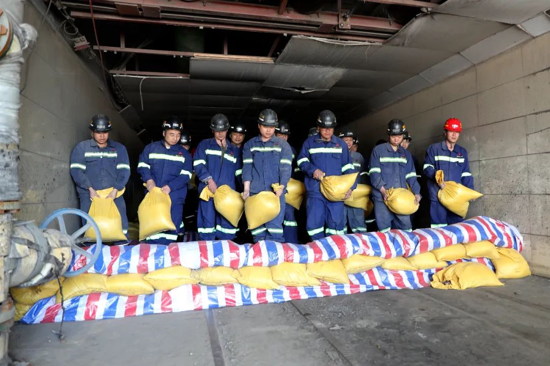 總指揮的一聲令下,各搶險(xiǎn)隊(duì)伍立即奔赴現(xiàn)場,迅速到雨季“三防”專用倉庫領(lǐng)取鐵锨、編織袋等搶險(xiǎn)物資,風(fēng)馳電掣般的跑到料場,把一袋袋防汛沙袋迅速運(yùn)到工業(yè)廣場,及時(shí)疏通排水溝,并用防汛沙袋封堵副一、副二平硐井口,最短的時(shí)間內(nèi)已砌好了防洪墻,有效地化解了洪水泄入進(jìn)風(fēng)斜井的險(xiǎn)情。與此同時(shí),救護(hù)、醫(yī)療、后勤保障、消防迅速地在各自參戰(zhàn)崗位準(zhǔn)備并迅速投入戰(zhàn)斗。演練中,各搶險(xiǎn)隊(duì)統(tǒng)一行動、密切配合、通力合作,各項(xiàng)工作扎實(shí)、有序。