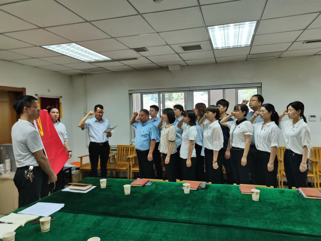 我志愿加入中國共產(chǎn)黨,擁護(hù)黨的綱領(lǐng),遵守黨的章程……”6月23日上午,在文體中心407室,公司人力資源部黨支部15名黨員面向黨旗,高舉右手,重溫入黨誓詞。