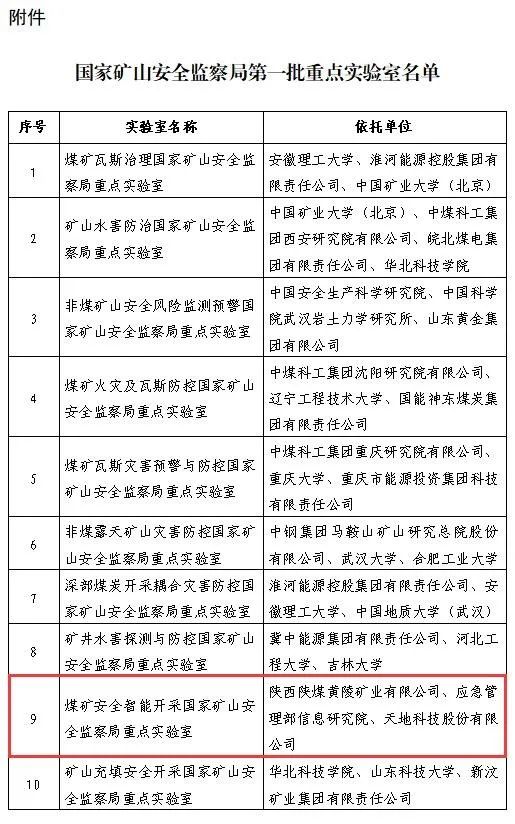 6月23日,國家礦山安全監(jiān)察局公布第一批批準(zhǔn)建設(shè)的10家國家級(jí)重點(diǎn)實(shí)驗(yàn)室名單,煤礦安全智能開采重點(diǎn)實(shí)驗(yàn)室落戶黃陵礦業(yè)公司,這是公司在煤礦智能化建設(shè)領(lǐng)域取得的又一成績。