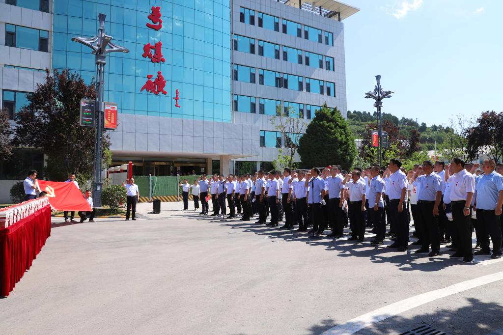 該礦21黨支部,80余黨員面對黨旗,在礦黨委的帶領(lǐng)下,莊重地舉起右手,重溫入黨誓詞。