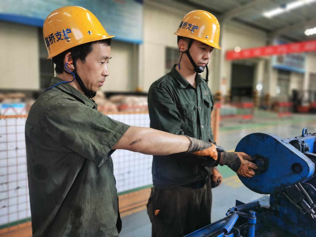 “李冬冬,把耳塞帶好?!薄皬垬?lè)樂(lè),開機(jī)前檢查了沒(méi)?”說(shuō)話的人名叫邵軍武,是鑫橋公司支護(hù)總廠錨桿車間的一名安全員。