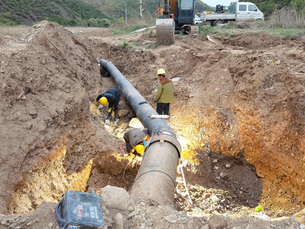 洪水過后,該公司應(yīng)急搶修,鋪設(shè)臨時管路恢復(fù)供水、架設(shè)臨時木桿恢復(fù)供電,但因洪水沖刷致使沮河河道改遷,原沿河鋪設(shè)供水管路、跨河拱管均已損毀,供電桿塔倒桿、傾斜,供水系統(tǒng)設(shè)施存在重大安全隱患。該公司將原有架空管道改為地埋式,減少了管道承受河水的沖刷力,提高了供水流暢性。對于必要跨河部署的重要管線,采用高標(biāo)號混凝土對管道支墩進行加固,采取管道周邊修筑混凝土護坡等措施,對管道進行全方位防護,進一步保障管道運行可靠性。