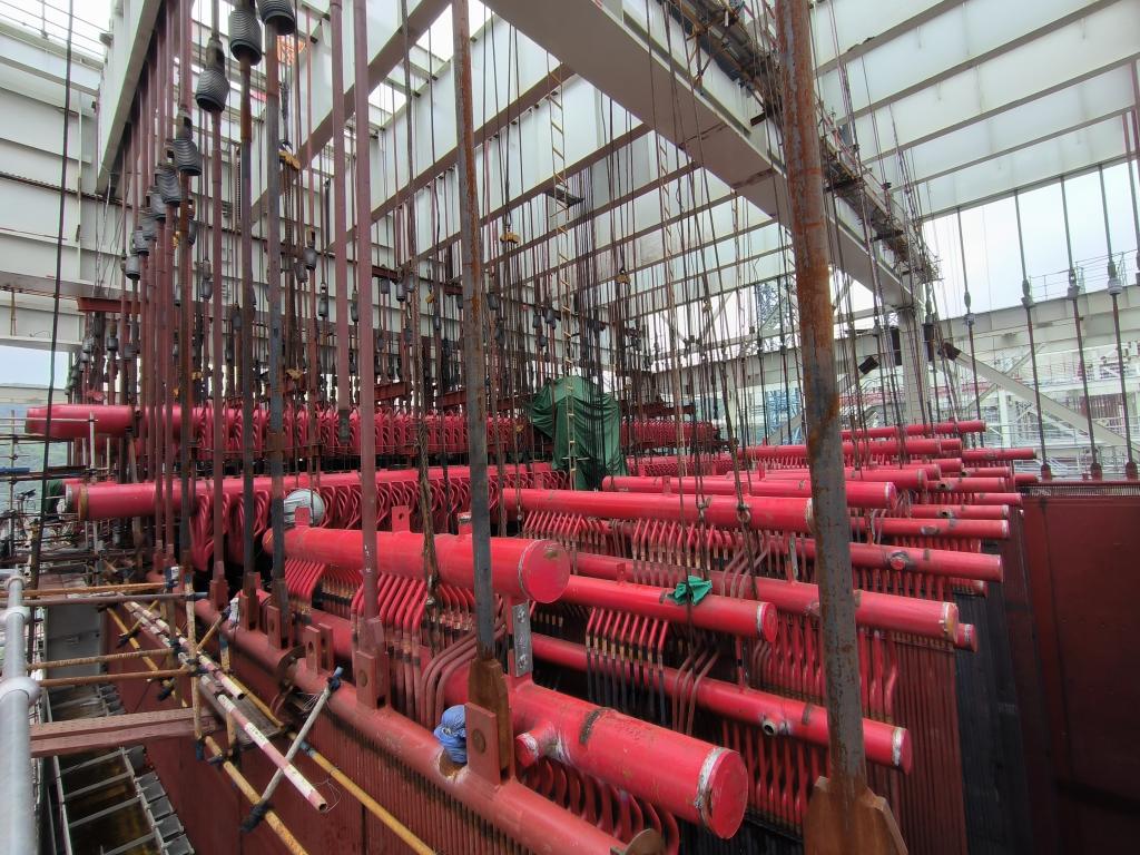 “受熱面大件吊裝開始前,我們認(rèn)真編制了‘鍋爐受熱面大件吊裝’方案,并嚴(yán)格按照方案內(nèi)容執(zhí)行。從去年首先開始上部水冷壁吊裝,今年開始后豎井設(shè)備以及鍋爐三大屏的吊裝;吊裝采用24小時兩班倒方式穿插進(jìn)行吊裝,確保吊裝工期?!惫こ碳夹g(shù)部鍋爐專工王鵬介紹道。
