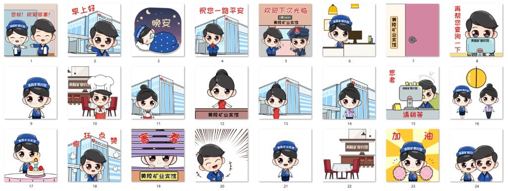 近日,黃陵礦業(yè)賓館官方表情包正式上線,首批推出的表情包名為“小兵小美的那些事”,以接待員、保安、餐飲服務(wù)員、客房服務(wù)員形象為原型,將酒店人形象和卡通IP相結(jié)合,塑造了“賓小兵”和“賓小美”兩個(gè)卡通IP形象。結(jié)合日常問(wèn)候、情緒傳達(dá)等常用語(yǔ),開(kāi)發(fā)制作了包含“查詢一下”“吃啥呢”“打擾了”等多種酒店場(chǎng)景的原創(chuàng)動(dòng)態(tài)表情包,共計(jì)24款,呆萌超Q,很是圈粉。