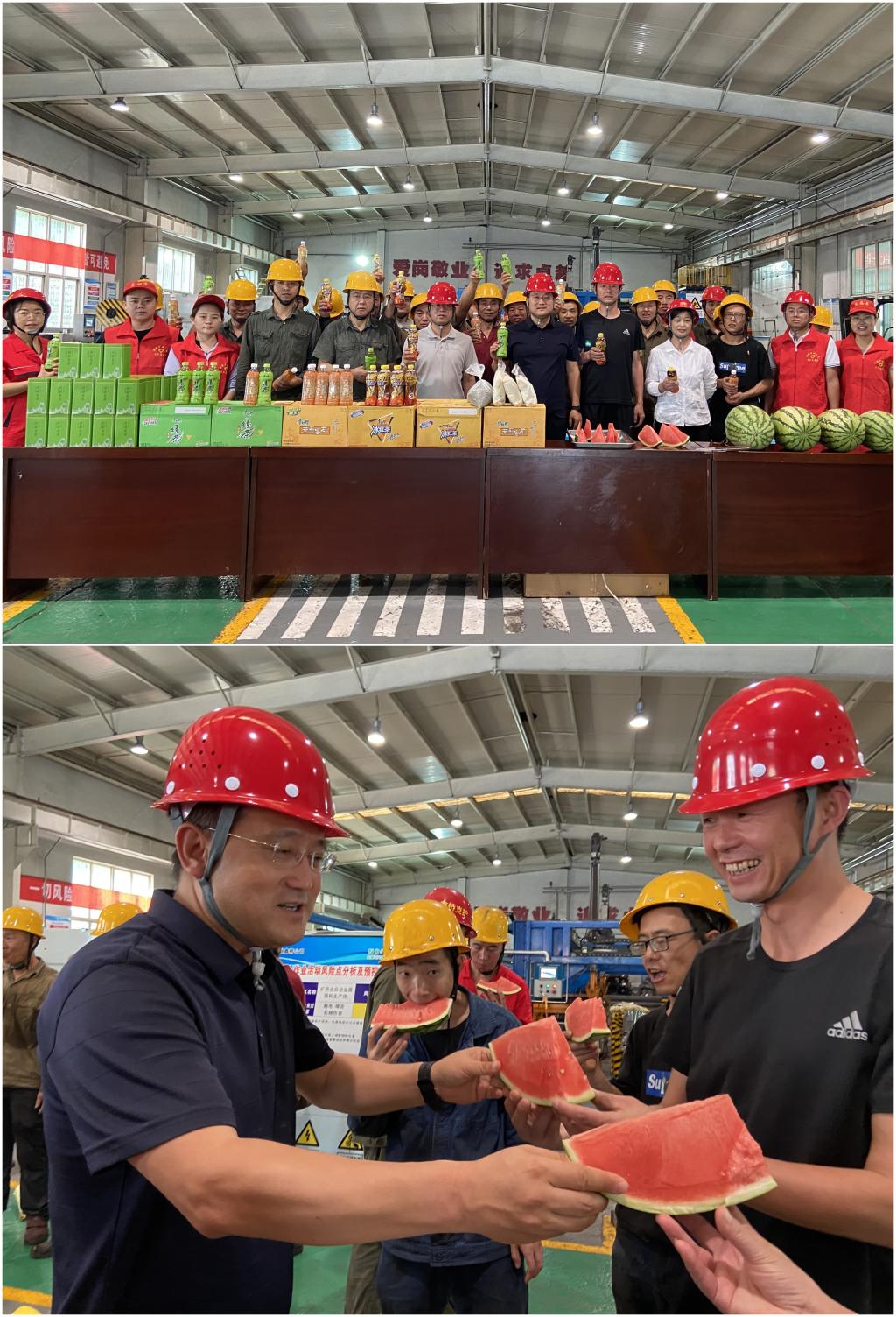 “大家辛苦了!快來吃點西瓜,解解暑。車間內(nèi)溫度更高一些,但是再熱也不能把頭頂?shù)陌踩闭簦绞茄谉嵩揭⌒?,安全第一。”活動現(xiàn)場,該公司支部書記迂敏將驅(qū)蚊水、清涼油、西瓜、菊花茶、藿香正氣水等防暑降溫物品發(fā)放到職工手中,感謝大家付出的辛勤勞動,并叮囑大家按章作業(yè),始終把安全擺在工作的首位。