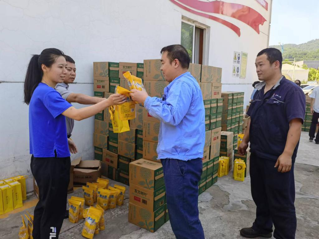 “送清涼”活動(dòng)現(xiàn)場,工作人員將茉莉涼茶、冰糖等送到職工手中,感謝他們?yōu)楣景l(fā)展所做的貢獻(xiàn),在這最“熱情”的季節(jié)為他們送上了最“清涼”的關(guān)懷。