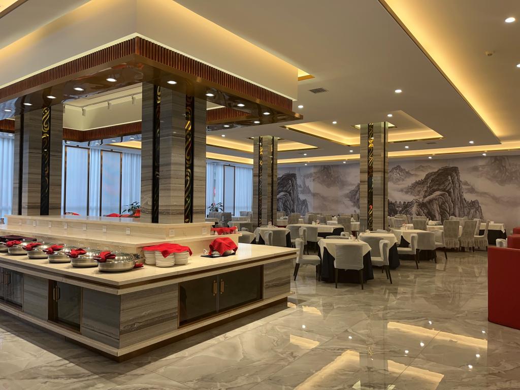 據(jù)悉,在此次升級改造過程中,礦業(yè)賓館針對餐飲部自助餐廳使用年限久遠(yuǎn)、設(shè)施設(shè)備陳舊、污漬無法徹底清理等問題,對太陽廳進(jìn)行了地板墻面翻新,此前較為落伍的電視背景墻也換成了更為時尚大氣的山水畫,水果檔上方也由之前的靜態(tài)圖轉(zhuǎn)變成LED顯示屏,整個太陽廳看起來更為明亮、大氣、精致。